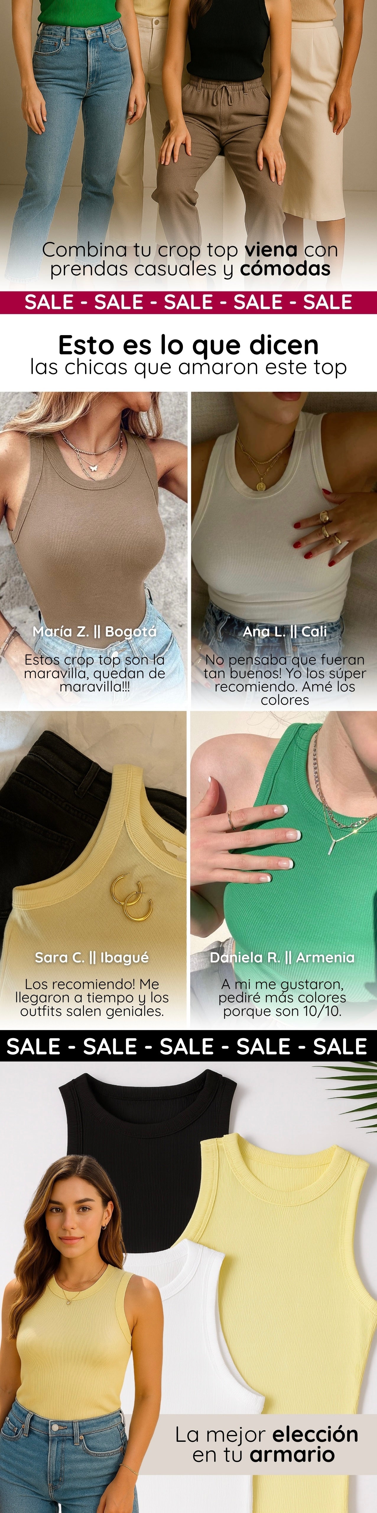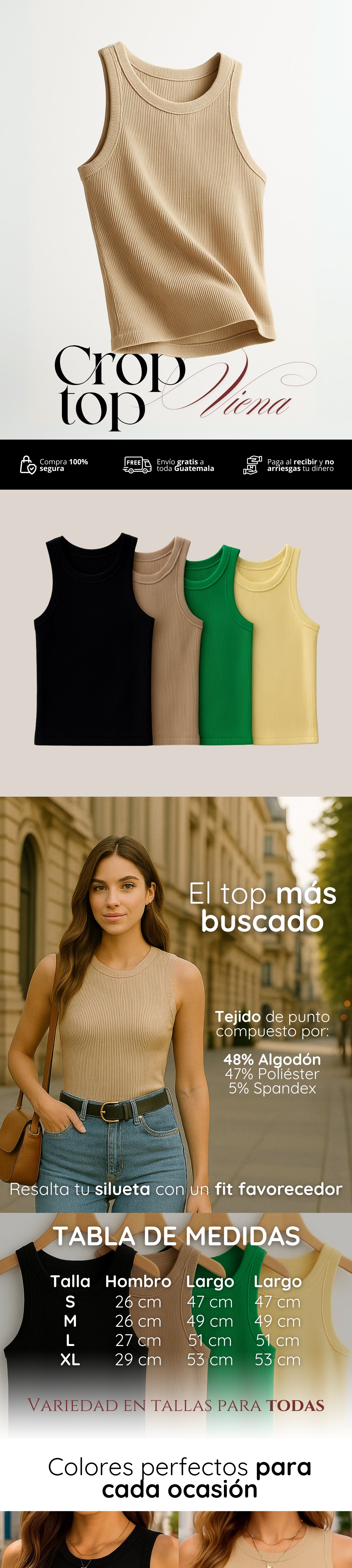 Nuestro Croptop Viena está elaborado en tela Rib premium de alta calidad. Vas a poder sentir que horma tu figura, realza tu cuerpo y estiliza cualquier outfit que quieras llevar.